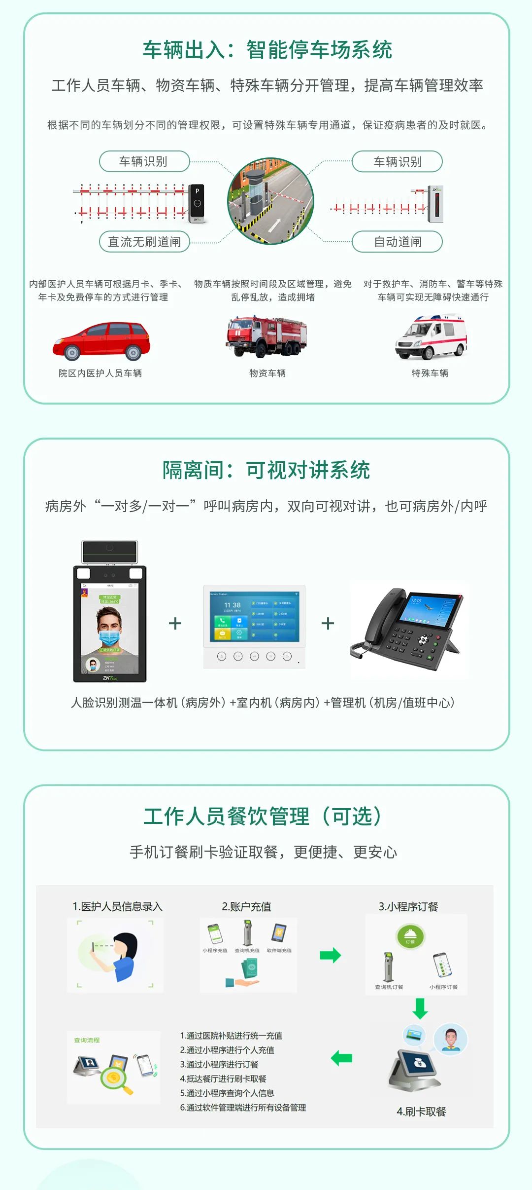 應(yīng)對疫情防控新形勢,作為科技抗疫代表企業(yè)的中控博業(yè),依托在混合生物識別和計(jì)算機(jī)視覺領(lǐng)域的先天優(yōu)勢,順勢推出隔離場所無接觸防疫一體化解決方案。這一面向方艙醫(yī)院、發(fā)熱門診、健康驛站等隔離場所推出的綜合性防疫場景解決方案,涵蓋視頻、門禁、防疫(測溫)、對講以及人行、車行等多個(gè)智能化子系統(tǒng),可以靈活地組合實(shí)現(xiàn)每個(gè)模塊之間的數(shù)據(jù)互聯(lián)和統(tǒng)一管理,從而顯著強(qiáng)化醫(yī)護(hù)人員的安全保護(hù),提高醫(yī)護(hù)人員、隔離人員的溝通便捷性,多方位提升防疫管控效率。