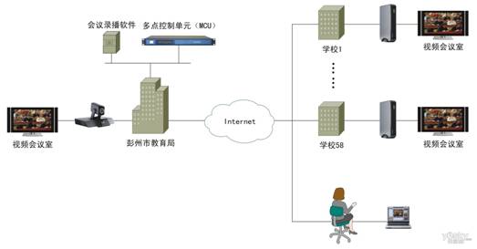 一般的視頻會議系統包括MCU多點控制器(視頻會議服務器)、會議室終端、PC桌面型終端、電話接入網關(PSTNGateway)、Gatekeeper(網閘)等幾個部分。各種不同的終端都連入MCU進行集中交換,組成一個視頻會議網絡。